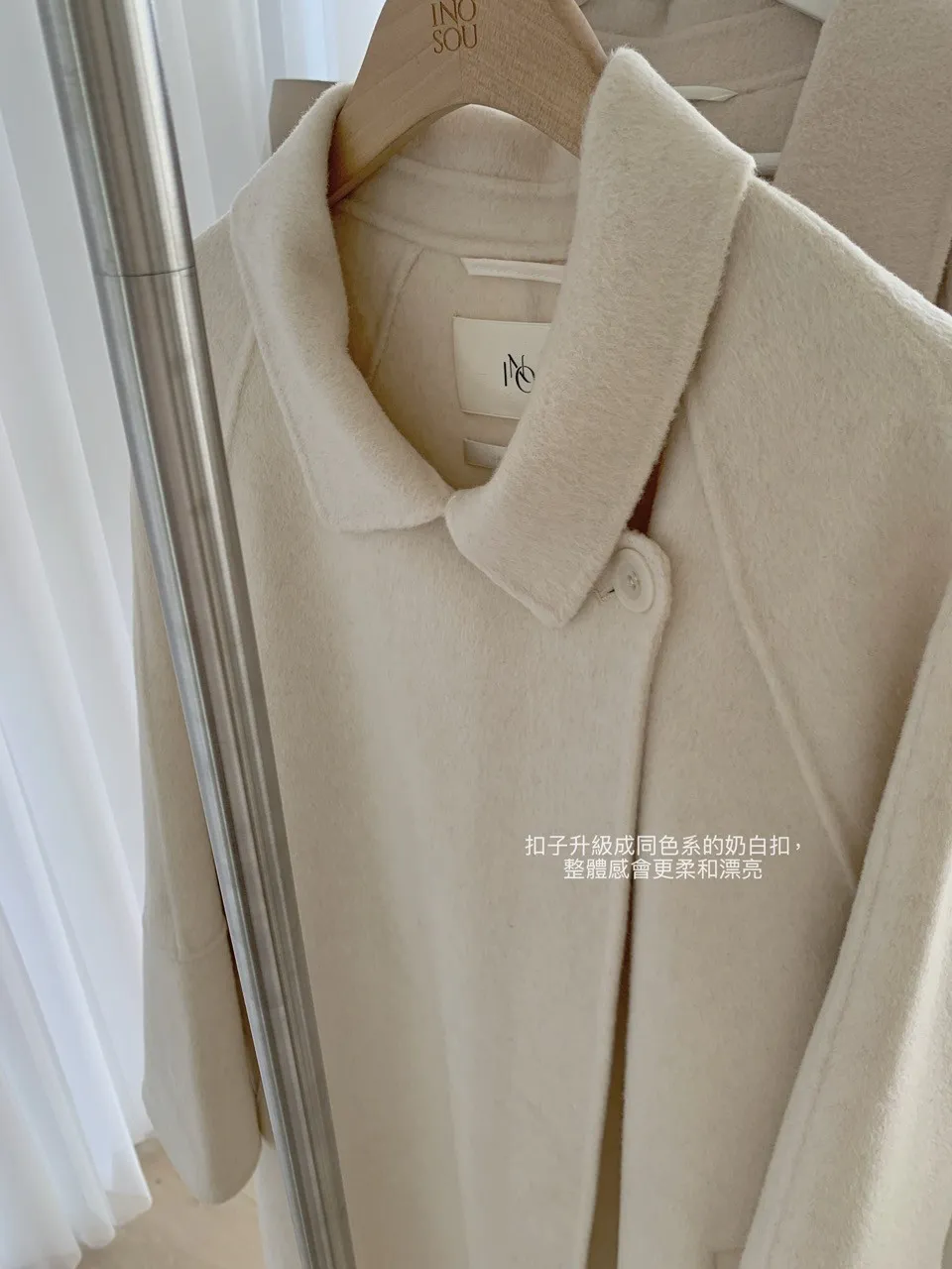 與一般開襟大衣不同的是...